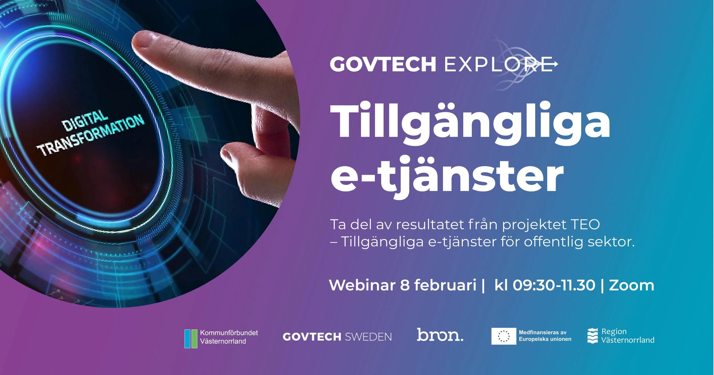 Under detta webinar kommer vi få ta del av lärdomar, insikter och resultat från två års intensivt projektarbete. I samtalet möter du bland annat Charlotte Sandelius och Sara Johnston från Kommunförbundet Västernorrland, Mikael Bergström och Emelie Holmlund, IT-strateger från Örnsköldsviks och Sundsvalls kommun, samt Terese Raymond från Digidelnätverket.